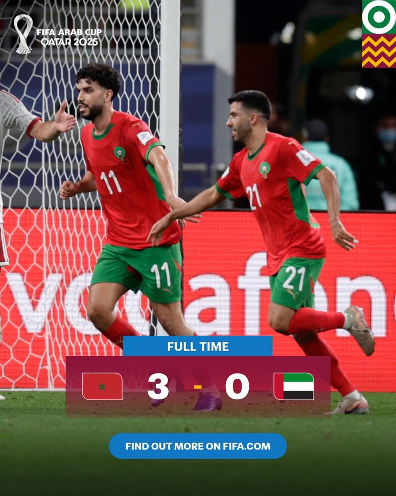تأهّل المنتخب المغربي لكرة القدم إلى الدور النهائي لكأس العرب «قطر 2025» عقب فوزه، اليوم الاثنين، على نظيره الإماراتي بثلاثة أهداف دون رد، في إطار الدور نصف النهائي للمسابقة.