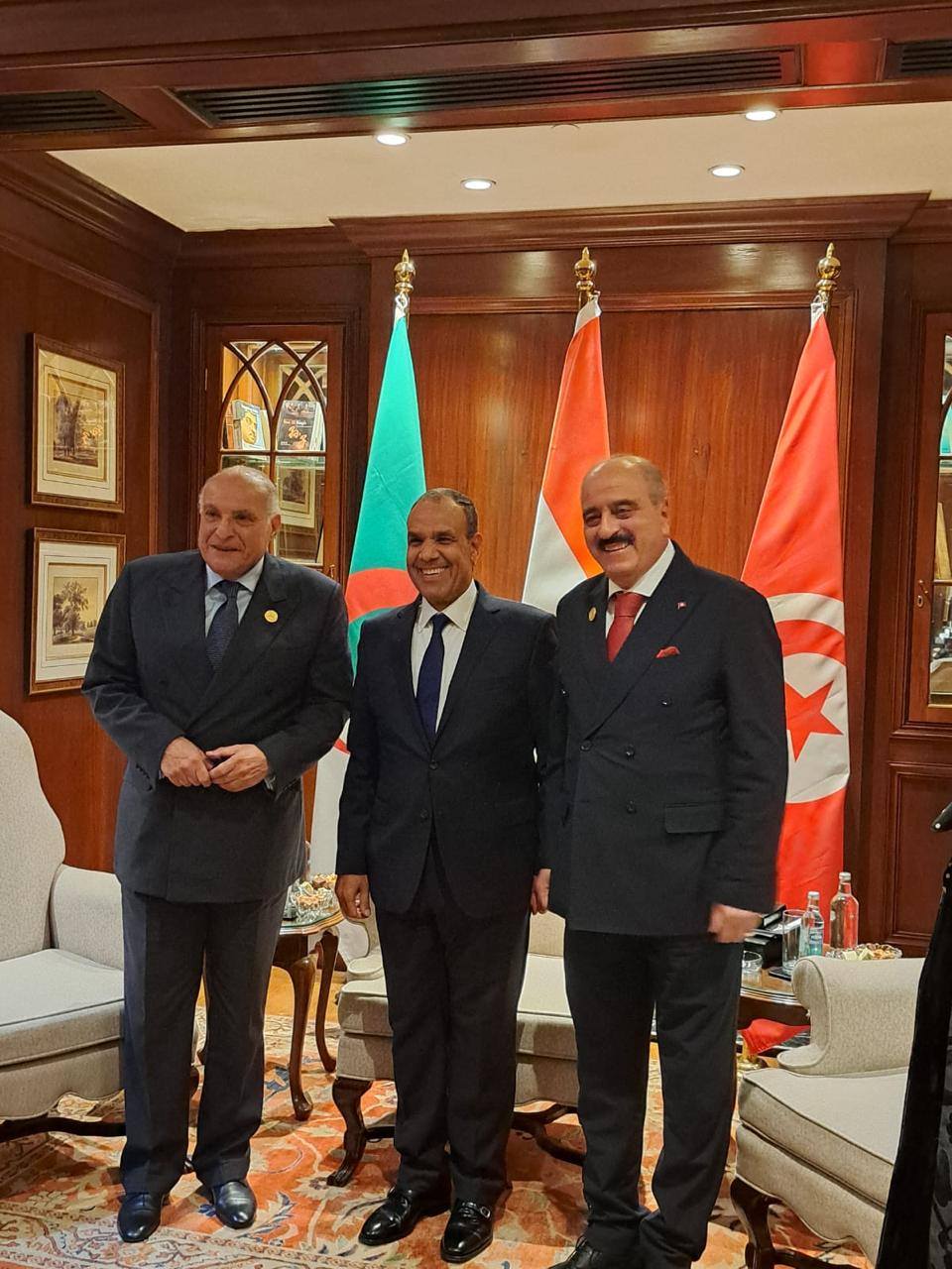 التقى الوزير بكل من نظيره المصري بدر عبد العاطي، وزير الخارجية والهجرة والمصريين بالخارج، ووزير الدولة الجزائري أحمد عطاف، وزير الشؤون الخارجية والجالية الوطنية بالخارج والشؤون الإفريقية.