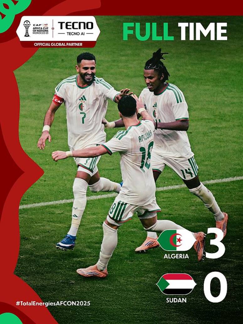 كأس إفريقيا للأمم 2025 : المنتخب الجزائري يفوز على نظيره السوداني 3–0