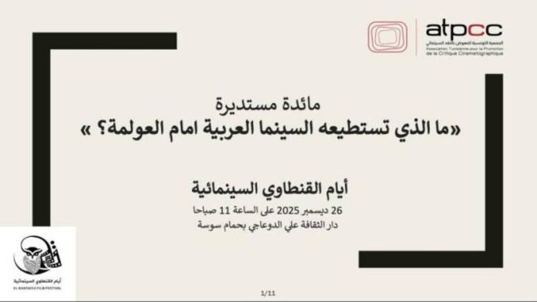 وتتنزل هذه الندوة في إطار فعاليات أيام القنطاوي السينمائية التي انطلقت يوم أمس الخميس 25 ديسمبر بعرض فلمي "أمل"، روائي قصير لرحمة بن جماعة، و "زريعتنا" وثائقي طويل لأنيس الأسود، وتتواصل فعاليات هذه الأيام إلى غاية 28 ديسمبر 2025، لتقدم لجمهور سوسة العديد من الأعمال التي تراوح بين الأفلام الروائية والوثائقية فضلا عن استفادة هواء السينما من عدد من الورشات التكوينية التي تنتظم على هامش المهرجان.