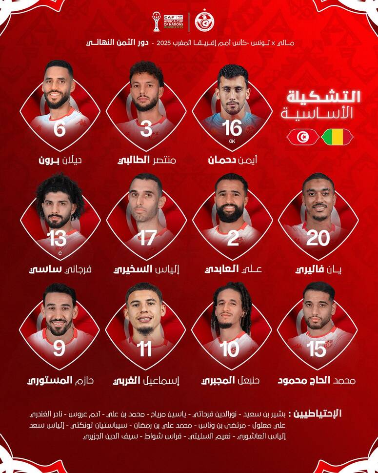 بطموح تصحيح المسار والقطع مع تذبذب الأداء الذي لازمه خلال الدور الأول، يخوض المنتخب التونسي لكرة القدم اختبارًا حاسمًا عندما يواجه نظيره المالي اليوم السبت على أرضية ملعب محمد الخامس بالدار البيضاء انطلاقًا من الساعة الثامنة ليلا، لحساب الدور ثمن النهائي لكأس أمم إفريقيا المقامة حاليًا بالمغرب.