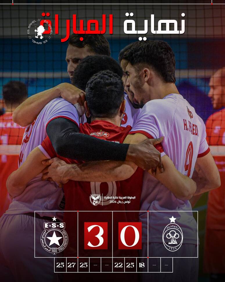 فاز النجم الساحلي على الاتحاد الليبي بثلاثة اشواط نظيفة اليوم الخميس بقصر الرياضة بالمنزه في اطار الجولة الاولى لمنافسات المجموعة الثانية ضمن الدور الاول من البطولة العربية للاندية للكرة الطائرة المقامة بقصر الرياضة بالمنزه الى غاية 17 جانفي الجاري بقصر الرياضة بالمنزه.