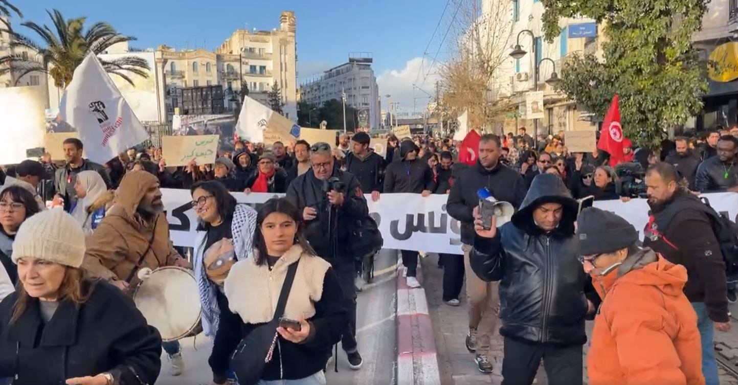 وانطلقت المسيرة من أمام ساحة البلفدير مرورا بشارع الحرية ثم نهج روما وصولا إلى شارع الحبيب بورقيبة، حيث تم تأمين كامل المسار الذي مرت منه المسيرة عبر تعزيزات أمنية هامة من مختلف الوحدات.