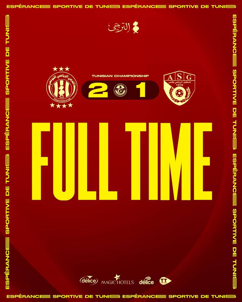 سجّل للترجي: يان ساس (10 ض ج)، حمزة الجلاصي (45+3 ض ج)