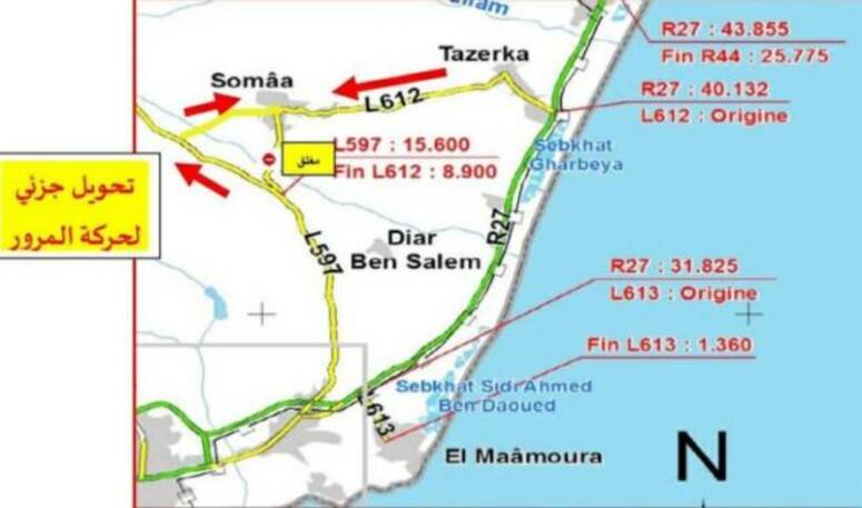 وياتي هذا القرار، تبعا لتسجيل اضرار على مستوى المنشاة المائية بوادي المغازل بالطريق المحلية رقم 612 الرابطة بين مدينة تازركة مرورا بمدينة الصمعة الى حدود الطريق المحلية رقم 597، ناجمة عن تهاطل كميات هامة من الامطار بولاية نابل يومي 19 و 20 جانفي 2026.
