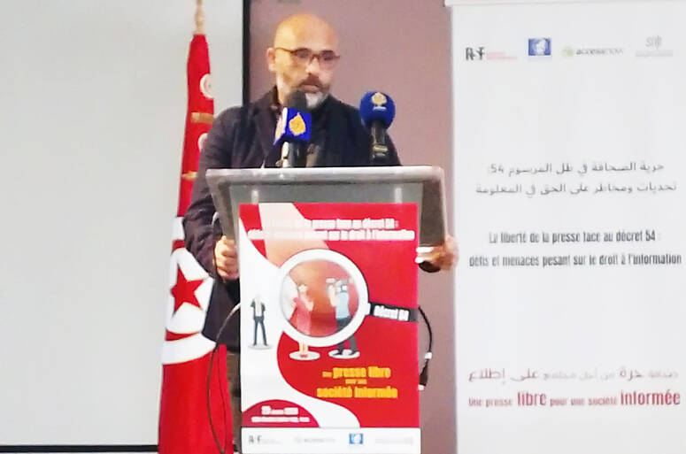 ولاحظ نقيب الصحفيين زياد دبّار، في مداخلته، أن مشكلة المرسوم 54 لا تهم الصحفيين وحدهم وخطورته لا تكمن في الزّجر والسجن فقط بل في "القضاء على الصحافة الجادّة والمستقلة والمسؤولة، نظرا لأنه خلق مناخا عامّا من الخوف لدى الصحفيين، الذين باتوا يتجنبون المواضيع الجادة والحسّاسة"، وفق تعبيره.