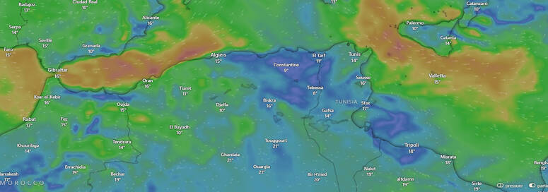 وتشير التوقعات إلى هبوب رياح قوية إلى قوية جدًا على أغلب مناطق البلاد بداية من ظهر السبت، بسرعة تتراوح بين 60 و80 كلم/س، مع هبّات قد تبلغ مؤقتًا 110 كلم/س، خاصة بعدد من ولايات الشمال والوسط والجنوب.