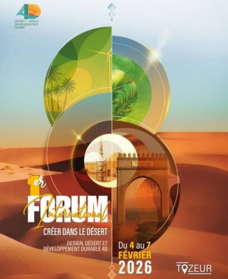 انطلقت، اليوم بمدينة الاربعاء بتوزر، أشغال المنتدى الدولي «التصميم والصحراء والتنمية المستدامة: ابتكر في الصحراء»، الذي ينظمه محور البحث والفنون البصرية والتصميم والتكنولوجيا بجامعة صفاقس، بمشاركة سبع جامعات تونسية وباحثين وخبراء أجانب، وذلك من 4 إلى 7 فيفري 2026.