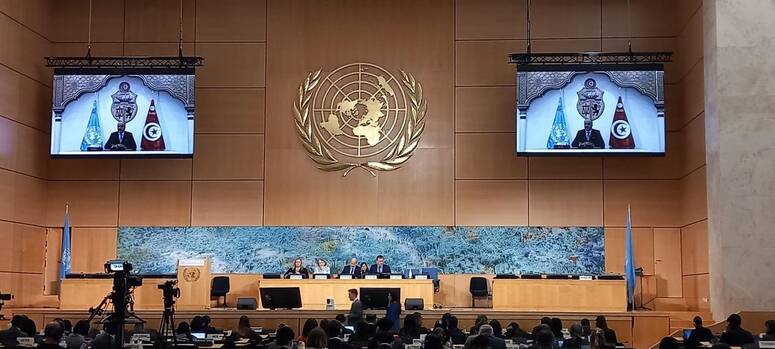 وأكد حرص تونس على الايفاء بالتزاماتها الدّوليّة المترتّبة عن انخراطها في المنظومة الدّوليّة لحقوق الانسان، فضلاً عن مصادقتها على أغلب المعاهدات والمواثيق الدّوليّة لحقوق الإنسان، واحتضانِها لمكتبٍ للمفوّضيّة السّامية لحقوق الانسان، وتلقّيها زياراتٍ لآلياتٍ خاصّة تابعة لمجلس الأمم المتّحدة لحقوق الانسان في إطار الدّعوة المفتوحة لهذه الآليات.