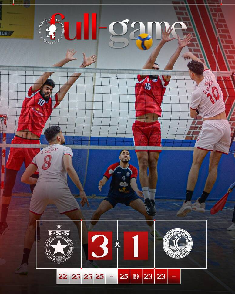 وفي قاعة مساكن، تمكن النجم الساحلي من التفوق على النادي الأولمبي القليبي بنتيجة ثلاثة أشواط مقابل شوط واحد.