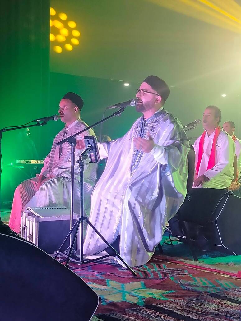 وبجملة لوحات استعراضية صوفية واهازيج روحية وأناشيد دينية وابتهالات مدحية وايقاعات تراثية عمت اجواء الخشوع والسكينة، واستطاع مخرج العمل جبران المديوني شد الجمهور بمختلف شرائحه العمرية طيلة السهرة بإضافاته الايقاعية ومزجه بين الآلات الموسيقية القديمة والعصرية وتناسقها مع الاضاءة والإخراج الركحي المتميز .