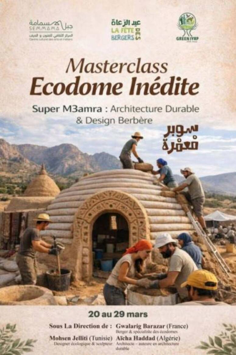 تحتضن ولاية القصرين، في إطار فعاليات الدورة 14 لتظاهرة عيد الرعاة 2026 بالمركز الثقافي الجبلي بسمّامة في معتمدية سبيطلة ، بالتزامن مع السنة الدولية للمراعي والرعي، ورشة معمارية إيكولوجية استثنائية تتضمن إنجاز أول مشروع متكامل للبناء بتقنية "سوبر أدوب"، ضمن مبادرة تحمل اسم "سوبر مْـعَمرة" المستوحاة من التراث المعماري المحلي.
