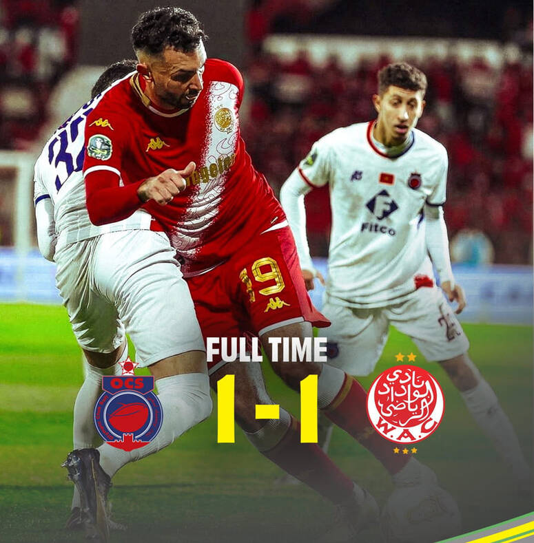 كأس الكونفدرالية الإفريقية (ذهاب ربع النهائي) أولمبيك آسفي المغربي يتعادل مع مواطنه الوداد الرياضي 1-1