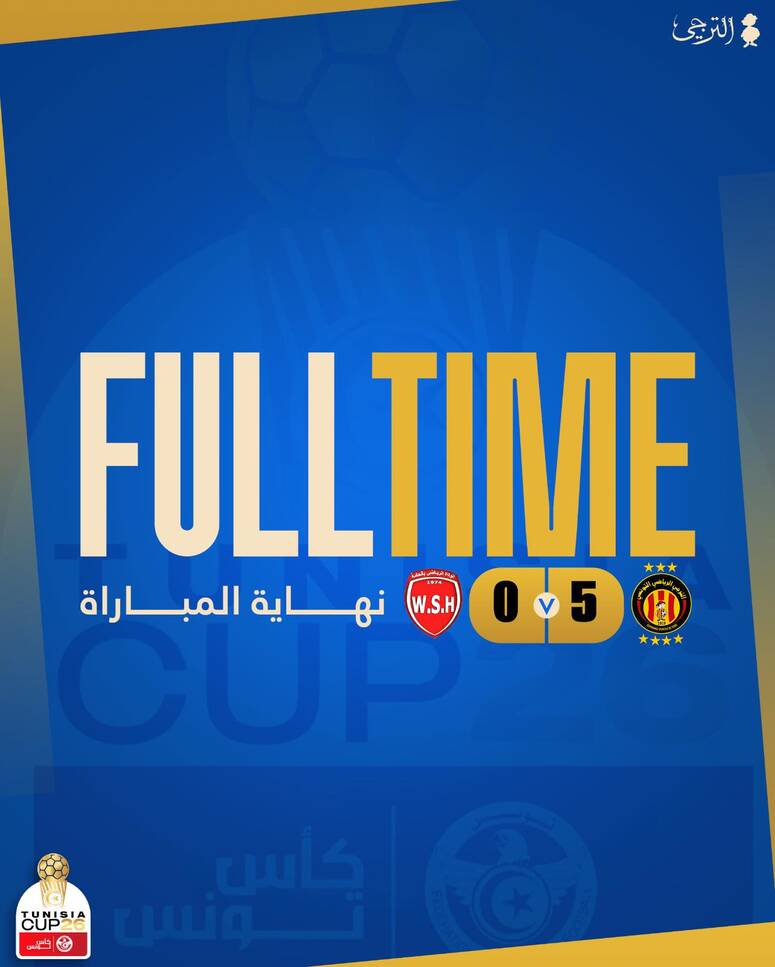 كاس تونس: الترجي الرياضي يفوز على وداد الحامة 5-صفر ويكمل عقد الاندية المتاهلة الى ثمن النهائي