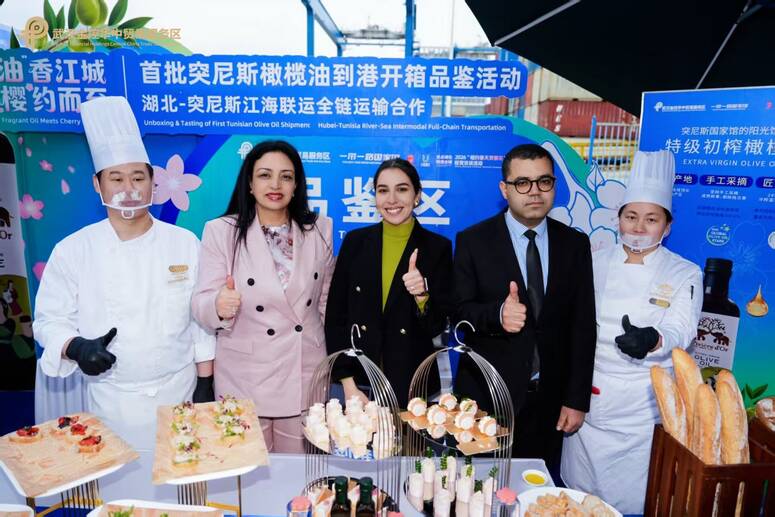 突尼斯共和国驻北京大使馆于昨日(周一)与中国武汉阳逻港务公司合作,在湖北省港口举办了一场经济推广活动,以庆祝一批重达50吨的突尼斯橄榄油出口产品首次运抵该港口。