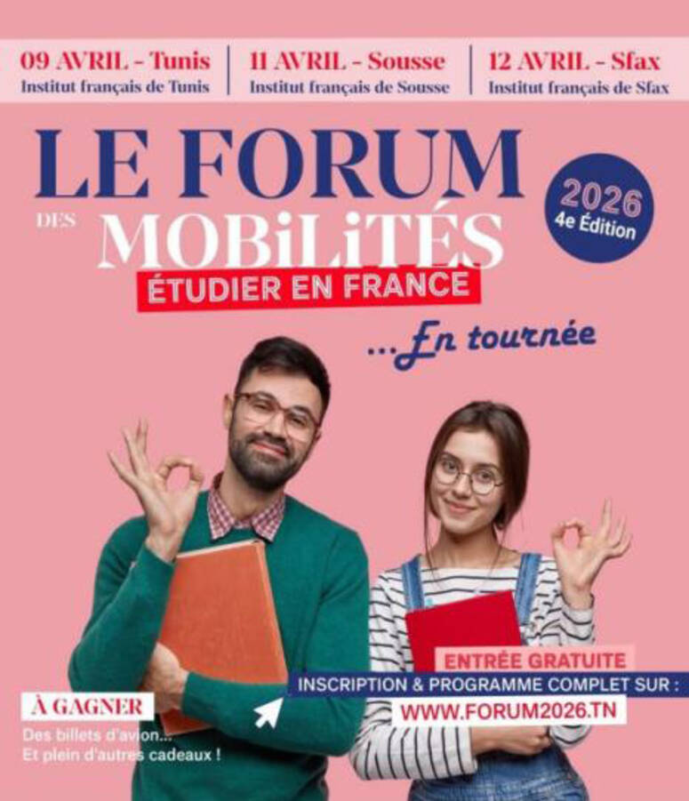 منتدى التنقل والدراسة بفرنسا في دورته الرابعة من 9 الى 12 افريل 2026 ببعض المدن التونسية