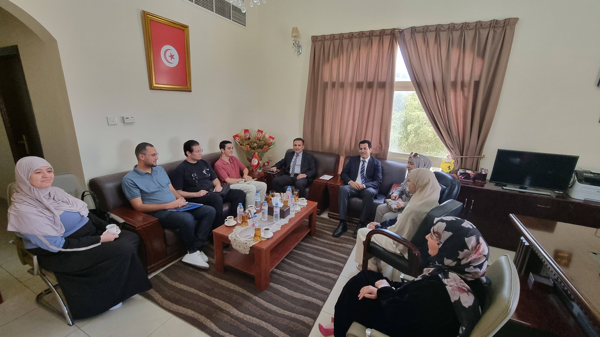 وتم خلال اللقاء تناول مختلف المواضيع التي تهم الطالب التونسي بدولة الإمارات العربية المتحدة على غرار التسجيل الجامعي ومصاريف الدراسة ومعادلة الشهادات العلمية وتجديد الاقامة.