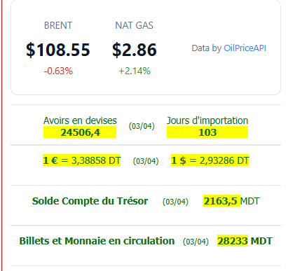كما ارتفع صافي الاحتياطي من العملة الصعبة من 23 مليار دينار (ما يعادل 101 يوم توريد) بتاريخ 3 أفريل 2025، إلى 24,5 مليار دينار حالياً، أي ما يغطي 103 أيام توريد.