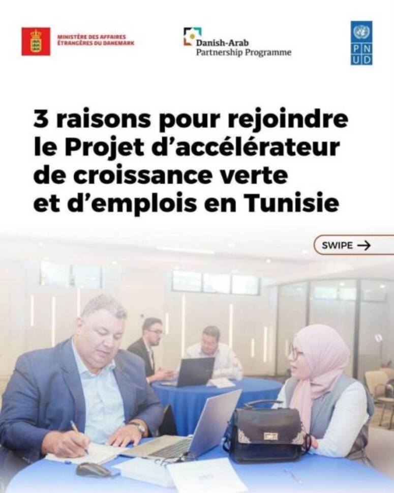 ويتنزل مشروع "مسرّع النمو الأخضر والتشغيل" ضمن استراتيجية أوسع تدعمها سفارة الدنمارك وبرنامج الأمم المتحدة الإنمائي (UNDP) في المنطقة العربية، بهدف خلق فرص عمل مستدامة ودعم الانتقال الطاقي والبيئي في دول جنوب المتوسط.