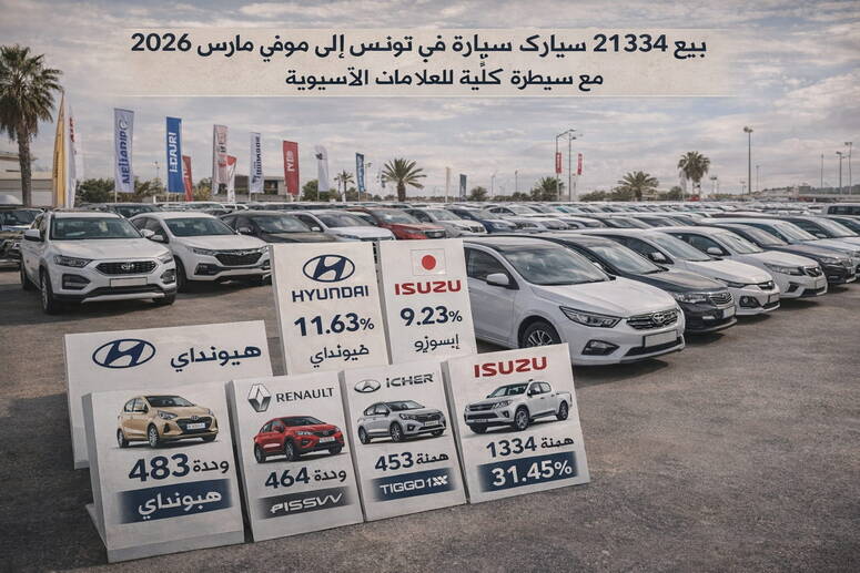 ترويج 21334 سيارة في السوق التونسية الى أواخر شهر مارس وسط شبه هيمنة للعلامات الآسياوية