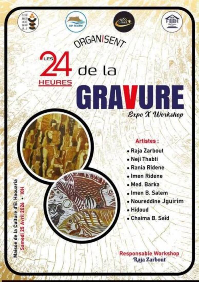معرض لفن الحفر يوم 25 افريل 2026 بدار الثقافة الهوارية