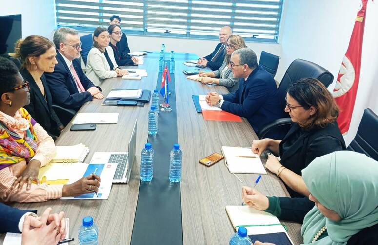 انعقدت يوم الخميس 26 أفريل 2026 جلسة عمل خصصت لمتابعة محفظة مشاريع التعاون مع البنك الأوروبي للإستثمار BEI بإشراف وزير الإقتصاد والتخطيط سمير عبد الحفيظ ومدير التعاون لمنطقة الشرق الأوسط وشمال افريقيا بالبنك Ulrich Brunnhuber والوفد المرافق له وبحضور مديرة مكتب البنك بتونس Anna Barone وعدد من إطارات الوزارة.