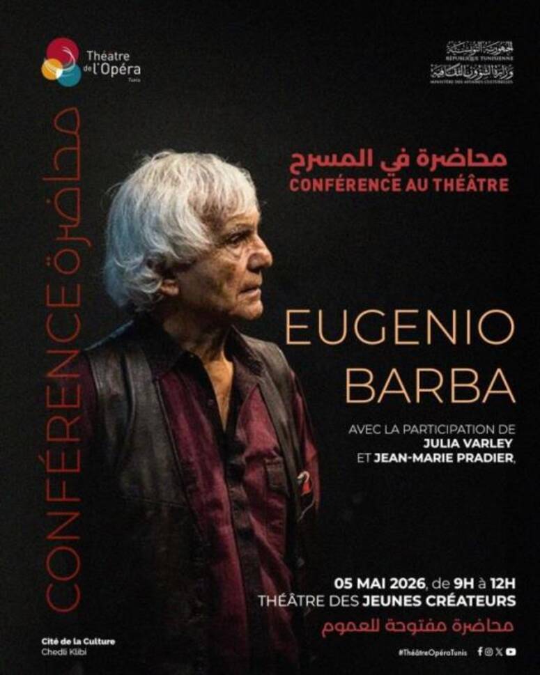 أعلن مسرح أوبرا تونس عن تنظيم لقاء فكري وفني رفيع المستوى، يتمثل في "ماستر كلاس" يقدمها المخرج والمنظر المسرحي العالمي يوجينيو باربا (Eugenio Barba)، وذلك يوم الثلاثاء 5 ماي 2026، بمسرح المبدعين الشبان بمدينة الثقافة الشاذلي القليبي.