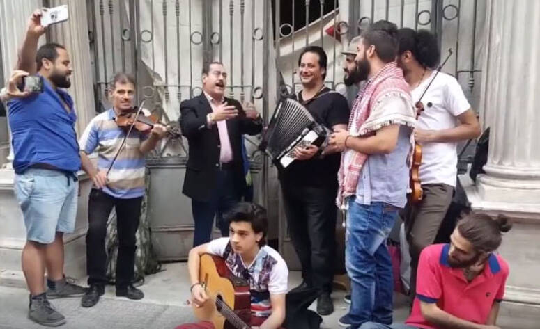 راج فيديو على مواقع التواصل الاجتماعي فيديو للفنان التونسي لطفي بوشناق وهو يشارك فرقة سورية الغناء و العزف في شوارع إسطنبول.