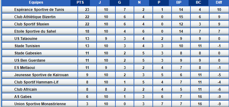 وأهدر النجم من جديد 3 نقاط ثمينة في سعيه لاحتلال مركز ضمن كوكبة الطليعة على مستوى أعلى الصدارة ليحتل المركز الرابع ب 18 نقطة في حين بقي النادي الصفاقسي في المرتبة الثانية صحبة النادي البنزرتي بمجموع 22 نقطة على بعد نقطة واحدة من الترجي ( 23 نقطة) الذي افتك الصدارة بفوزه على مضيفه شبيبة القيروان 2-صفر.