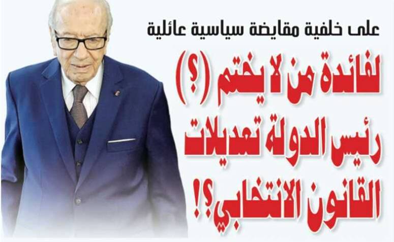 وتابع قائلا "لا يمكننا قبول فكرة أن عدم ختم هذا القانون كان بمحض إرادة الباجي قائد السبي" فعدم الختم يعني أن المحيط العائلي المباشر لرئيس الدولة هو صاحب القرار في هذه المسالة وهو الذي يتفاوض مع المتضررين من التنقيحات وعلى رأسهم نبيل القروي وهو الذي يقرر متى يختم رئيس الدولة هذا القانون المعدل.