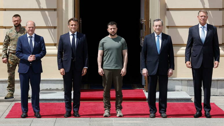 وأشار إلى أن المستشار الألماني أولاف شولتس والرئيس الفرنسي إيمانويل ماكرون ورئيس الوزراء الإيطالي ماريو دراغي، وصلوا إلى كييف في زيارة رسمية.