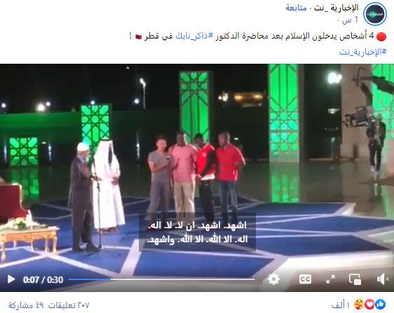 وراج مقطع فيديو على أنّه لاعتناق أربعة أشخاص الإسلام على يد الداعية الإسلامي ذاكر نايك