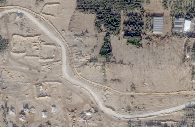 وتظهر الصور الملتقطة يوم 24 نوفمبر/تشرين الثاني، القوات الإسرائيلية وهي تحفر خندقا يبدأ من منطقة جحر الديك (شرق المنطقة الوسطى بقطاع غزة) بطول 1.8 كيلومتر تقريبا.