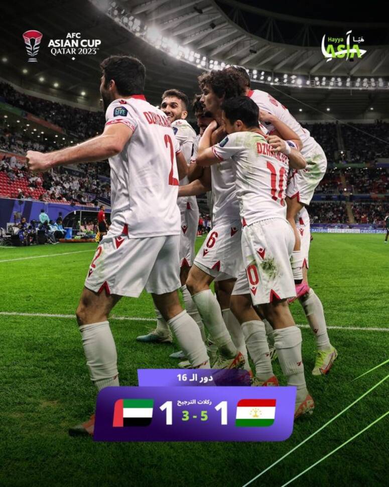 من جانبه، تمكن منتخب طاجيكستان من الفوز على نظيره الإماراتي بركلات الترجيح (5 - 3) عقب تعادلهما بهدف لمثله، حيث سجل منتخب طاجيكستان هدفه الأول عن طريق اللاعب فاهادات هانونوف عند الدقيقة 31 في حين استطاع المنتخب الإماراتي معادلة النتيجة عند الدقيقة 90 ز5 عن طريق اللاعب خليفة الحمادي.