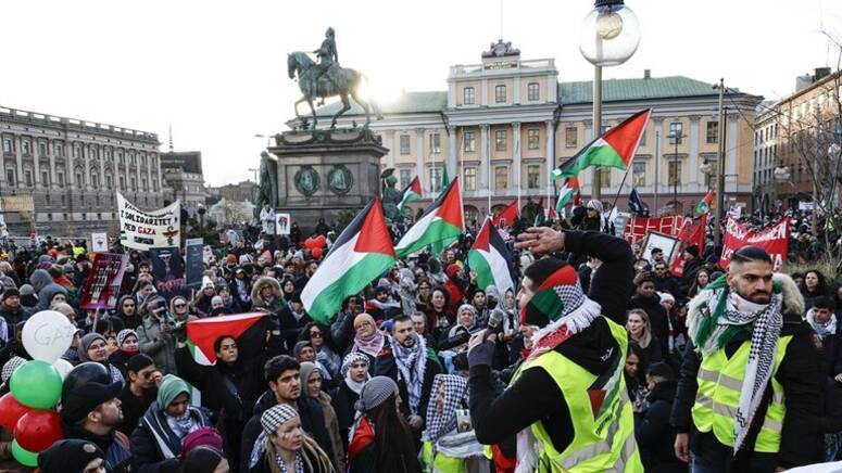 احتشد آلاف المتظاهرين المؤيدين للفلسطينيين في مالمو بالسويد، يوم الخميس، احتجاجا على مشاركة إسرائيل في مسابقة الأغنية الأوروبية "يوروفيجن".