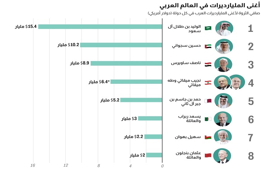 مجموع ثروات المليارديرات العرب يبلغ 122.1 مليار دولار ... السعودية في الصدارة.. فمن الأكثر ثراءً في العالم العربي؟