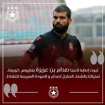 وات - اعلن النجم الساحلي على صفحته الرسمية بموقع التواصل الاجتماعي "فايسبوك" عن اصابة لاعب كرة القدم صدام بن عزيزة بفيروس كورونا.