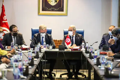 استقبل وزير السياحة محمد المعز بلحسين، مساء الأربعاء 01 ديسمبر 2021 بمقر الوزارة، وفدا من إتحاد منظمي الرحلات والسياحة بألمانيا "DRV" يتقدمهم رئيس الإتحاد "Norbert Fiebig" حيث تم التباحث حول سبل تدعيم الوجهة التونسية بالسوق الألمانية في اطار استعادة النشاط السياحي لما بعد كوفيد-19 من قبل إتحاد منظمي الرحلات الألماني الذي يعد أهم الاتحادات السياحية لمنظمي الرحلات بأوروبا، وذلك في إطار زيارة العمل التي يؤديها الوفد حاليا إلى تونس.