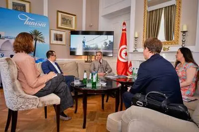 وناقش بلحسين سبل التعاون لانجاح الموسم السياحي وامكانية تطوير عدد الوافدين على الوجهة التونسية من خلال وضع برمجة شتوية للرحلات السياحية وذلك لثراء المنتوج السياحي التونسي و خاصة السياحة الصحراوية والواحية والايكولوجية والسياحة الثقافية والرياضية.