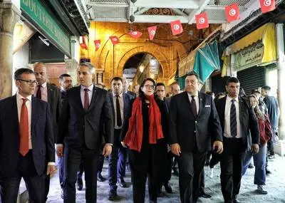 وزيرة الشؤون الثقافية ووزير السياحة يواكبان عرضا للإنارة الضوئية التفاعلية بالمدينة العتيقة بحضور عدد من السفراء