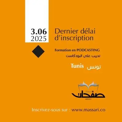 تم تحديد تاريخ 3 جوان 2025 كآخر أجل لقبول الترشحات للبرنامج التدريبي في تقنيات إعداد "البودكاست" الذي تنظمه جمعية "صفحات" لفائدة مهنيي قطاع الكتاب والنشر.