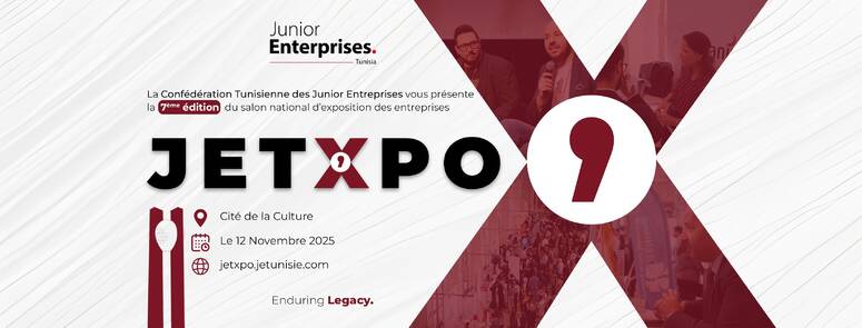 JETXPO 2025 من أكبر التظاهرات الطلابية في تونس، ينتظر أن يحضرها أكثر من 1500 من الطلبة والمتخرجين الجدد من رواد الاعمال ولديهم الخبرة في تنفيذ مشاريع قيمة بفضل مهاراتهم التقنية والشخصية لاكتشاف فرص العمل المتاحة لهم .