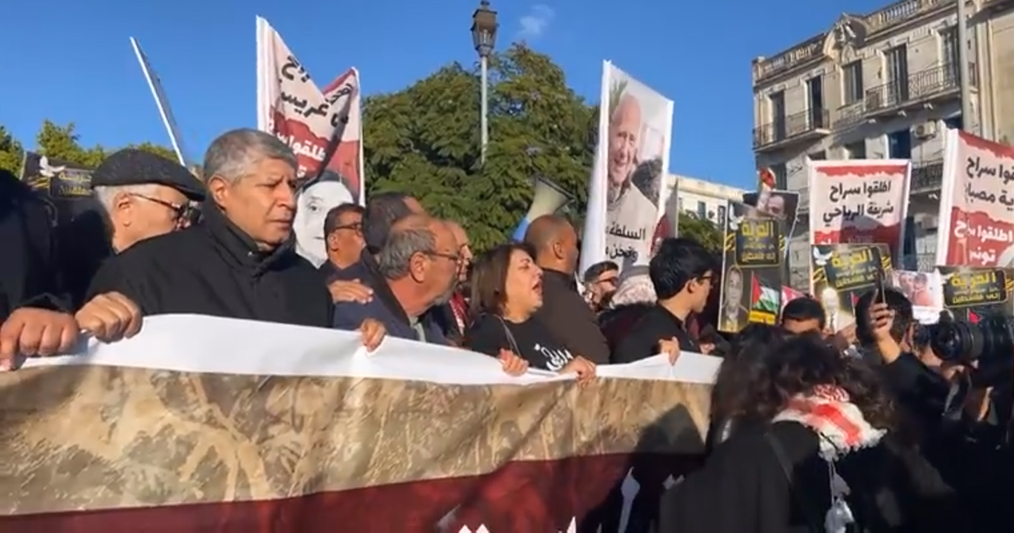 مسيرة وسط تونس العاصمة للمطالبة بإطلاق سراح المساجين في قضية "التآمر" وموقوفين في قضايا أخرى