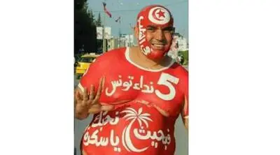 صورة اليوم: مشجع المنتخب الوطني ''الفيل'' يتحول الى لافتة اشهارية لصالح النداء