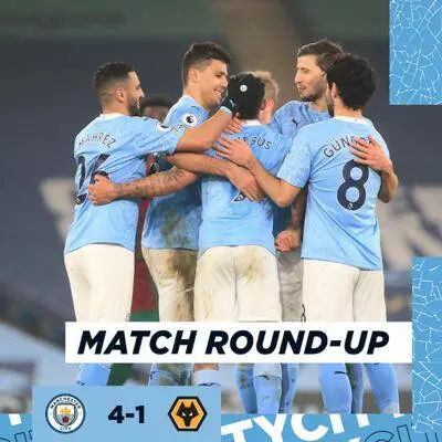 واصل مانشستر سيتي عزفه المنفرد بالقمة إثر تغلبه على ضيفه وولفرهامبتون بأربعة أهداف لواحد، الثلاثاء، في مباراة مُبكرة عن الجولة 29 من منافسات الدوري الإنجليزي الممتاز.