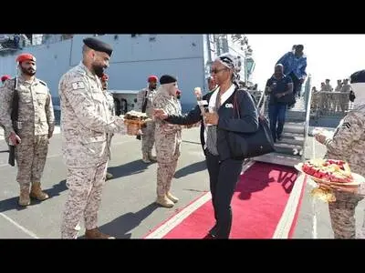 وعرضت قناة "الإخبارية" السعودية شريطا مصورا تظهر فيه سفينة حربية لدى وصولها إلى الميناء.