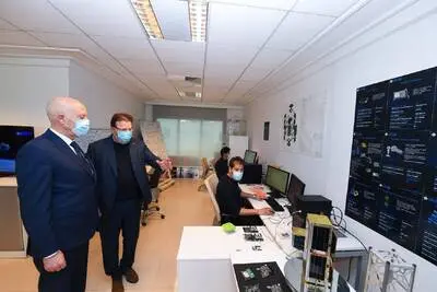 وتحادث رئيس الجمهورية بالمناسبة مع الرئيس المدير العام للمجمع محمد فريخة، الذي قدم لرئيس الدولة لمحة عن مكونات هذا المجمع الرائد ومجالات تخصصه والكفاءات التونسية المتميزة التي يزخر بها والتي نجحت في تطوير هذا القمر الصناعي الذي يحمل اسم "تحدي1" والذي سيتم إطلاقه يوم 20 مارس 2021 بمناسبة الاحتفال بعيد الاستقلال.