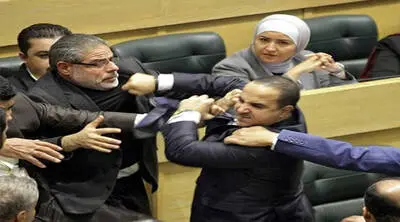 نشب خلاف وعراك بالأيدي في جلسة للبرلمان الأردني بعد مناقشة تعديلات دستورية مقترحة من ضمنها إضافة كلمة "الأردنيات" إلى جانب كلمة "الأردنيون"، وتدخل نواب آخرون للتهدئة، فيما غادر رئيس المجلس القاعة وقرر رفع الجلسة.