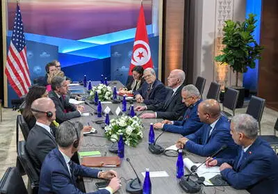 أجرى رئيس الجمهورية قيس سعيّد، يوم الأربعاء 14 ديسمبر 2022 بمركز المؤتمرات بواشنطن، جلسة عمل مع أنطوني بلينكن، وزير الخارجية الأمريكي، وذلك في إطار مشاركة رئيس الدولة في قمة قادة الولايات المتحدة الأمريكية وإفريقيا.