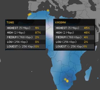 La Tunisie dont la vitesse de connexion a enregistré une évolution de 56% par rapport à l’année 2007 est ainsi classée la 1ère avec 96% de connexions supérieures à 2Mbps, suivie par la Corée du Sud (94%).